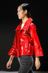 The Audrey red glossy vinyl Jacket is particularly elegant with its adjustable martingale on the back. She is the friend for a Parisian walk during mid-season or for early winter rain. She stands out – but her chic and balanced style allows her to be daring.