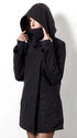 - Detachable and adjustable hoodie with cotton string and leather stopper